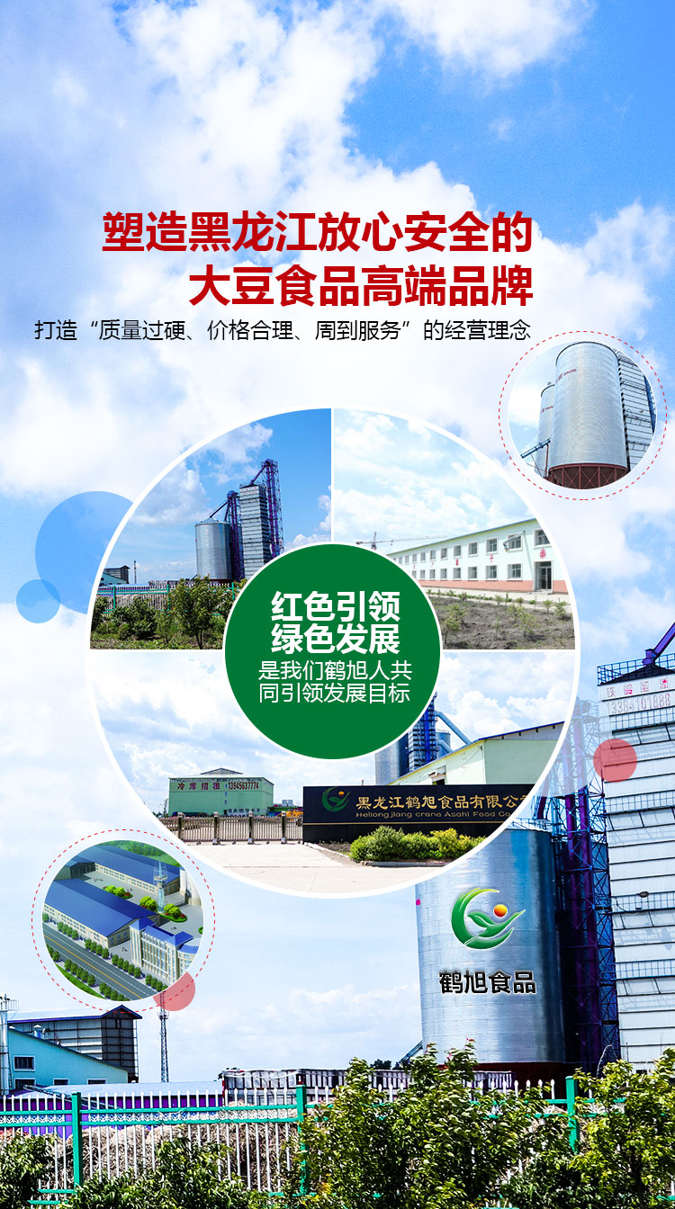 黑龍江鶴旭食品有限公司成立于2013年8月,企業(yè)座落于黑龍江省方正縣經(jīng)濟(jì)開發(fā)區(qū),注冊(cè)資金2000萬元。占地面積5萬平方米,總投資2.24億元。該公司以大豆、水稻食品加工產(chǎn)業(yè)為主,以制大豆休閑食品、大豆蛋白粉、非轉(zhuǎn)基因大豆油、大米為核心。是一家集農(nóng)業(yè)種植、大豆、水稻精深加工、冷鏈物流于一體的全產(chǎn)業(yè)鏈?zhǔn)称芳庸て髽I(yè),預(yù)計(jì)全部建成后年銷售額6億元,利稅4200萬元...
